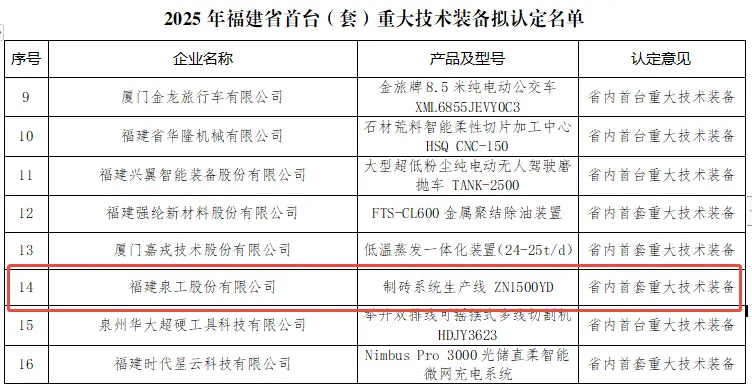 Gần đây, Sở Công nghiệp và Công nghệ thông tin tỉnh Phúc Kiến đã công bố "Danh sách các thiết bị kỹ thuật chính được công nhận (Bộ đầu tiên) năm 2025 tại tỉnh Phúc Kiến". Hệ thống dây chuyền sản xuất gạch được phát triển độc lập của Fujian Quangong Machinery Co., Ltd.—ZN1500YD—đã được lựa chọn thành công và được cấp tỉnh công nhận là "Thiết bị kỹ thuật chính (Bộ đầu tiên)". Sự công nhận này thể hiện đầy đủCông ty TNHH Cơ Khí Quang Côngnăng lực đổi mới kỹ thuật và khả năng R&D độc lập của chúng tôi trong lĩnh vực thiết bị sản xuất sản phẩm bê tông; nó cũng đánh dấu một cột mốc mới cho công ty trong lĩnh vực máy móc sản xuất gạch thông minh, cao cấp.