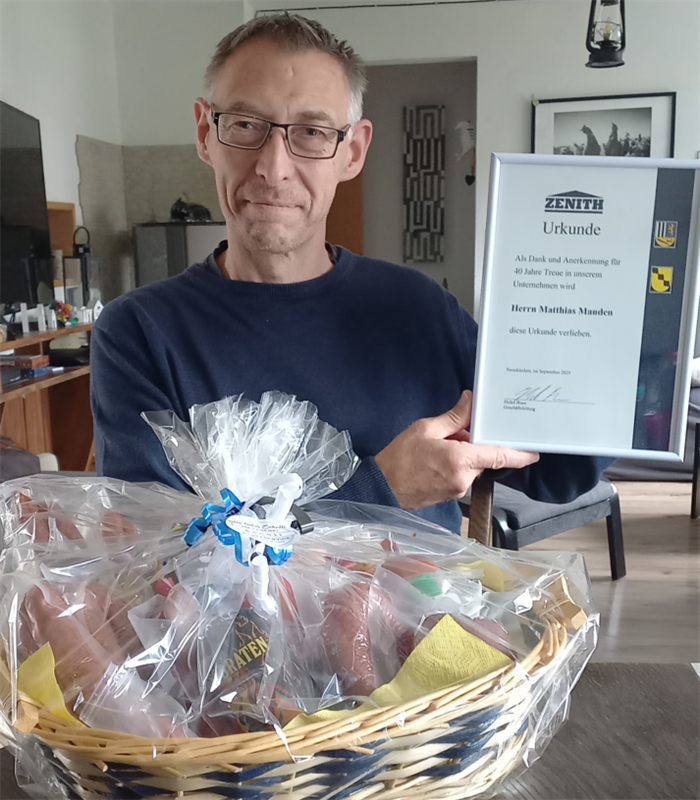 同样迎来三十周年纪念的还有Mr.Markus Türk,现年47岁。他在策尼特完成了为期三年的工业文员培训,现任备件销售部门主管。多年来,他凭借扎实的业务能力与责任心,为全球客户提供高效的售后支持,确保公司服务体系的高质量运转。