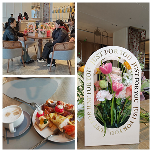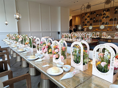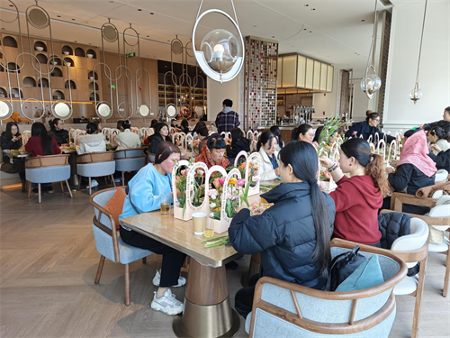 活动现场也为大家准备了精致的下午茶。精美的茶点、香浓的咖啡,搭配上亲手制作的插花作品,让每一位女性员工都感受到了公司对她们的关怀与尊重。大家在轻松愉悦的氛围中,分享着彼此的插花作品和烘焙成果,脸上洋溢着幸福的笑容。